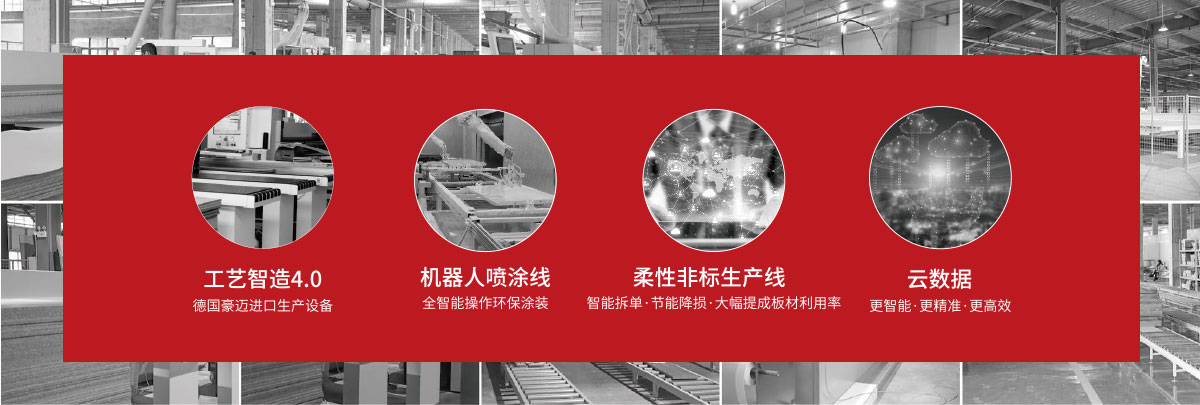 公司擁有強大的生產(chǎn)制造系統(tǒng),智能數(shù)控系統(tǒng)、環(huán)保UV涂裝工藝,并已率先在行業(yè)內(nèi)采用全自動噴涂機器人,先后引進豪邁開料機、封邊機、打孔機等精密設備,家居生產(chǎn)線實現(xiàn)高度規(guī)?;c自動化。